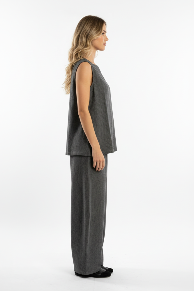 ارتقي بإطلالتك مع بنطلون واسع رمادي من نودا، وكمّلي التنسيق باختيار بلوزة رمادي أنيقة.
