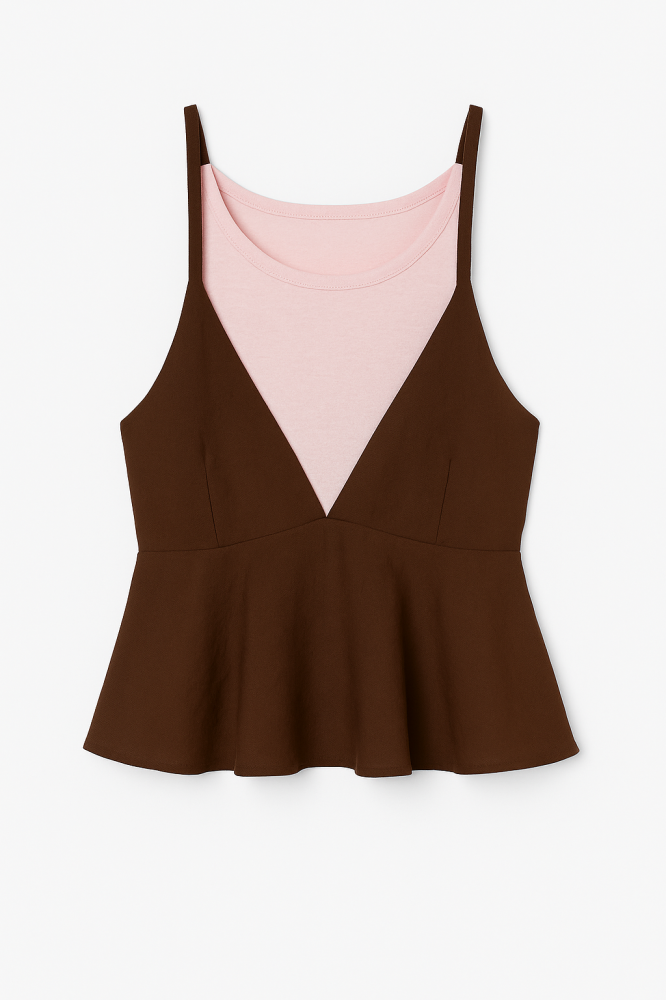 • التصميم: الجزء العلوي جاي بقصّة ضيقة عند الصدر، وبعدها يوسع بخفّة من الخصر لتحت بطريقة Peplum تعطي شكل أنثوي وجذاب
