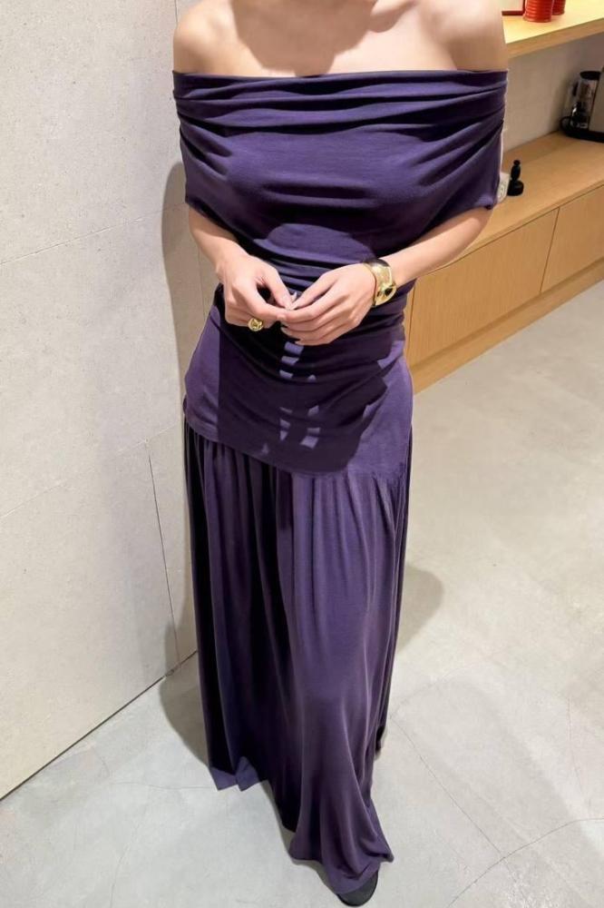 تميزي باطلالة كلاسيكية ناعمة مع طقم راقي يتكون من تنورة طويلة منسدلة